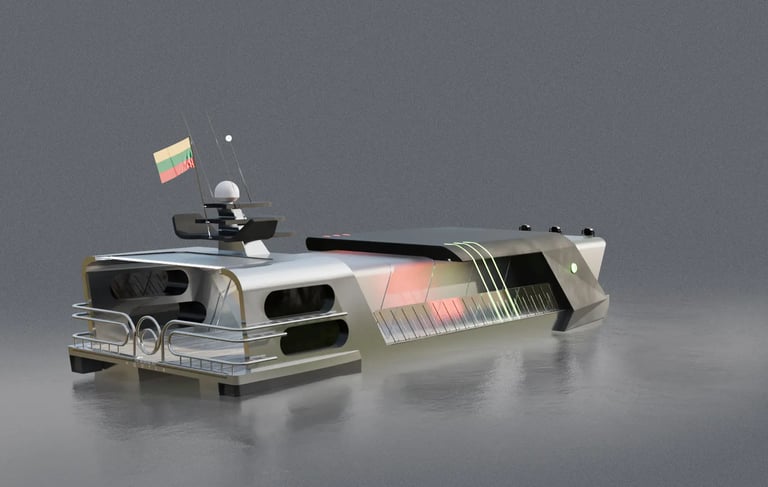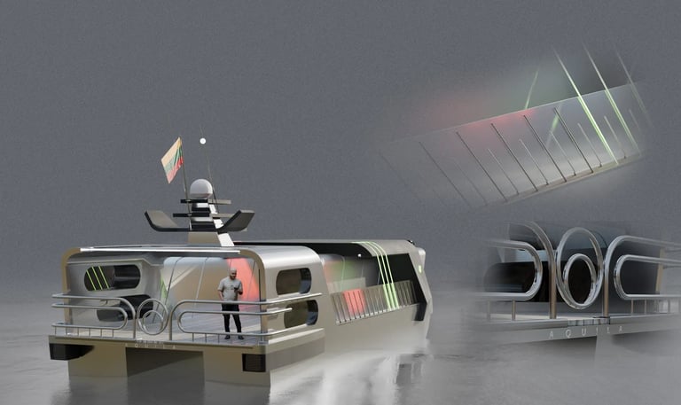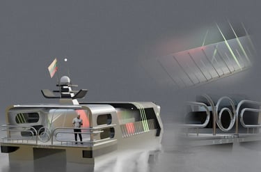 Developed during the Flumen Workshop 2024 in collaboration with Italian architect Alessio Liuni, this innovative river catamaran redefines sustainable water transport. Combining sleek Italian design with eco-friendly engineering, AQUILA offers a stylish and efficient solution for modern European river cruising. The project focused on creating a visually striking yet functional vessel, featuring hybrid propulsion, lightweight materials, and an adaptable layout – proving that sustainability and elegance can coexist on waterways.