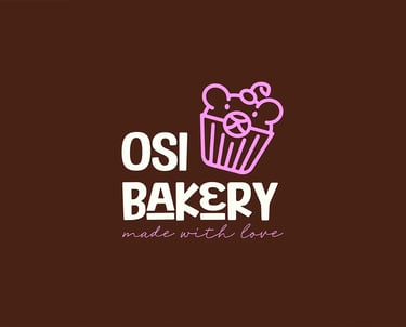 "Osi Bakery" logo embodies the brand's mission to deliver unique, joyful desserts through a playful yet sophisticated identity. Inspired by chocolate cupcakes, sprinkles and childlike wonder, the key mark is a bespoke circular typeface with hidden negative space shapes that reflect warmth and creativity.