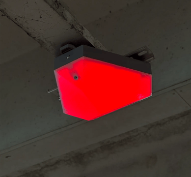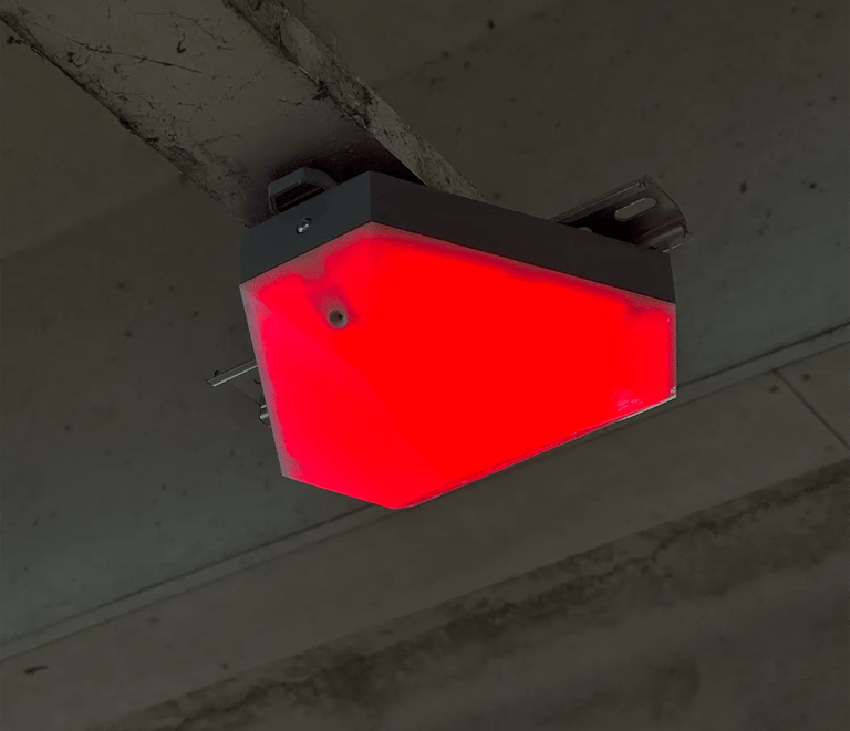 Another key decision was to combine two functions into one device: both vehicle presence detection and informational light signaling. UFO is the first front-mounted sensor where the ultrasonic module is installed at a 30° angle, allowing precise vehicle scanning before it fully enters the parking space.