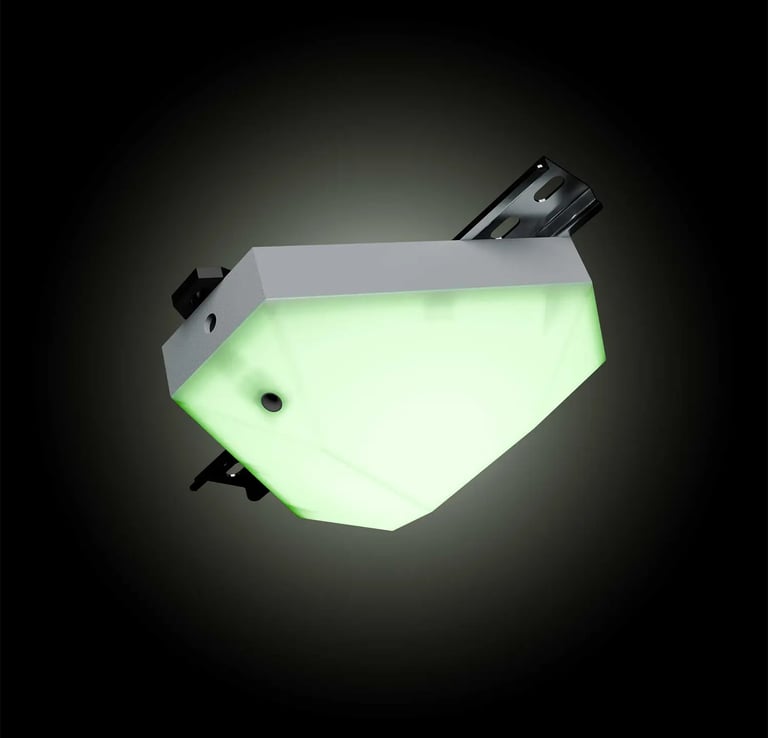 As an industrial designer, I decided to change the conventional form. Instead of the usual round shape, I proposed a diamond shape with six different light-refracting planes. This approach allowed for even diffusion of RGB light, increased visibility, and created an aesthetically “sharp,” technologically modern appearance.